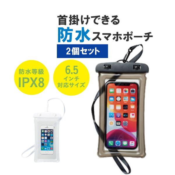 スマホケース 2個セット 防水 お風呂 iphone スマホ IPX8防水 6.5インまで対応 ネックストラップ 完全防水 水中撮影 海水浴 ポイント利用