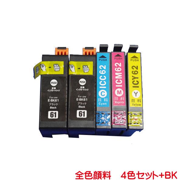 ICBK61 のみ2本 ICC62 ICM62 ICY62 を1本づつの計5本セット エプソン用 互換インク 顔料 IC4CL6162 プラス ICBK61 ink cartridge