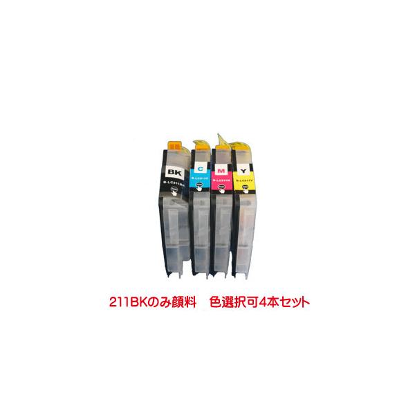 LC211BK 顔料 LC211C LC211M LC211Y 色数選択自由 4本セット LC211 対応 互換インク ink cartridge