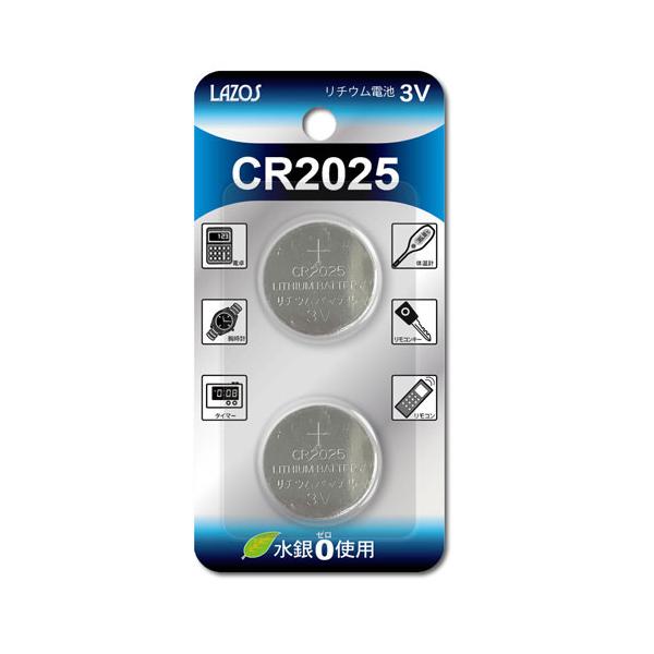 【180個セット(2個×90セット)】 Lazos リチウムボタン電池 CR2025 L-C2025X2X90