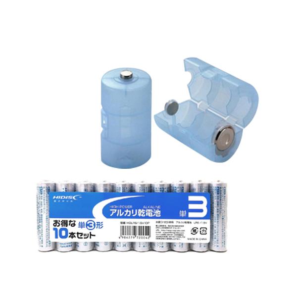 スマイルキッズ 単3が単1になる電池アダプターBL + アルカリ乾電池 単3形10本パックセット ADC310BL+HDLR6/1.5V10P