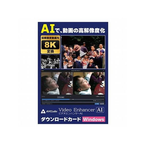 - 【この商品はダウンロードカード商品です】 白黒映像もカラーに!AIで低解像度の動画をデジタルリマスター。【圧縮された低画質動画も鮮明に拡大】「AVCLabs Video Enhancer AI」は、人工知能で動画を超高画質・高解像度に変換したり、昔のモノクロ映像を自動でカラー化する夢のような動画加工ソフトです。一生の思い出の動画がより鮮明になって蘇ります。■やることは「指示出し」のみ、あとはAIにすべてお任せ!メニューから機能(AIモデル)を選んで保存ボタンを押すだけのたった2クリック。変更前と変更後のプレビュー対応。AIにお任せできるので画質補正に関する知識は一切不要です。■AIだから設定不要でここまでできる!【1】20年前のムービー対応デジカメやビデオテープ時代の映像を最高画質で再保存【2】昭和の記録ムービーがカラーになって蘇る【3】Webから保存した圧縮動画ファイルも4K/8Kムービーに変換■最大8K対応!手ぶれも補正!20年前に撮影した動画も最高画質に変換 AI技術で8Kサイズ(7680x4320pixel)まで出力対応!例えばこんな動画に!・ノイズが乗ったり解像度の足りない動画・ピンボケ手ぶれ動画・ビデオテープ時代に録画した番組動画・miniDV時代の映像・初期のデジカメや携帯電話(ガラケー)の低画質動画・Webからダウンロードした圧縮動画・昭和の白黒映像(自動カラー化対応)■昭和の白黒映像が、AIで高画質カラー映像に!・カラー化すれば、当時の記憶も鮮明に蘇ること間違いなし!・設定不要!AIが自動着色、たったの2クリックで完了です■AIで解決!動画のノイズも、不鮮明な映像も綺麗に・AIで解析し修正、ノイズの入った動画や高圧縮動画ファイルも生まれ変わる■AIにおまかせ、ビデオの画質を向上!古い動画も大画面TVで視聴・顔をより鮮明に、顔を検出してぼやけた部分を鮮明に美しく見せる・インターレース解除もかんたん■動画の切り抜き、超スーパースローモーション動画も・好きな範囲でクロップして部分ズームをした動画やショート動画作成・切り抜いた映像の高解像度化・16倍のスーパースローモーション、60FPS変換■たったの2ステップで完了・やりたいことを選ぶだけであとは自動処理・お気に入りの設定はプリセット保存可能、複数のファイルを一括で処理・AIプロセッサー、使用メモリ量を指定して高速変換・プライバシーにも配慮、ネット接続なしに利用〇システム要件■対応OS : Windows 11/ 10/ 8/ 7(64ビットのみ)(GPU アクセラレーションには DirectX 12以降が必要です。)■ プロセッサ : 4GHz Intel / AMDプロセッサ以上■ モニター : 1920x1080 ピクセル以上の解像度のモニター■ 空き容量 : 15G以上■ RAM : 8GB以上を推奨注 : AMD および Intel グラフィックカードは、Windows10バージョン1903以降でサポートされています。〇ハードウェア要件最小要件 : 2015年以降の Intel CPU(第4世代) / 2016年以降の AMD CPU推奨 : Intel i7(第7世代)以降(4GHz以上)または Ryzen 7以降(4GHz以上)〇グラフィックカードAVCLabs Video Enhancer AI でサポートされている NVIDIA グラフィックカードを確認してください。注 : AMD および Intel グラフィックカードは、Windows10バージョン1903以降のコンピューターでサポートされています。Windows 10バージョン1903以降の場合 : NVIDIA Kepler(GTX 600シリーズ)以降。 AMD GCN 第1世代(Radeon HD 7000シリーズ)以降。 Intel Haswell(第4世代コア)HD統合グラフィックス以降Windows 10バージョン1903より前 : NVIDIA GTX 1050Ti以降〇対応形式入力形式 : 3G2、3GP、AVI、DIVX、FLV、F4V、M2TS、MTS、MOV、MP4、M4V、MPEG、MPG、DAT、MKV、OGM、RMVB、RM、TS、TP、VOB、WMV、WTV、ASF、DV、 WEBM出力形式 : MP4■注意事項 : ※この商品はダウンロードカード商品です。※インストールには、管理者権限での実行が必要です。※ご利用の際はオンラインアクティベーションをする必要があります。※インストール、アカウント登録時には安定したインターネット接続環境が必要です。【代引きについて】こちらの商品は、代引きでの出荷は受け付けておりません。【送料について】北海道、沖縄、離島は送料を頂きます。