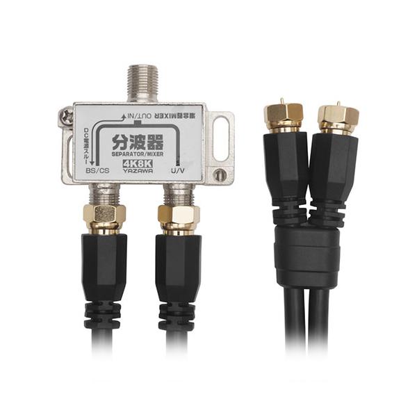 【25個セット】 YAZAWA アンテナ混合分波器 OUT50CM×2本 ケーブル付 黒 ATBCUV977BKX25