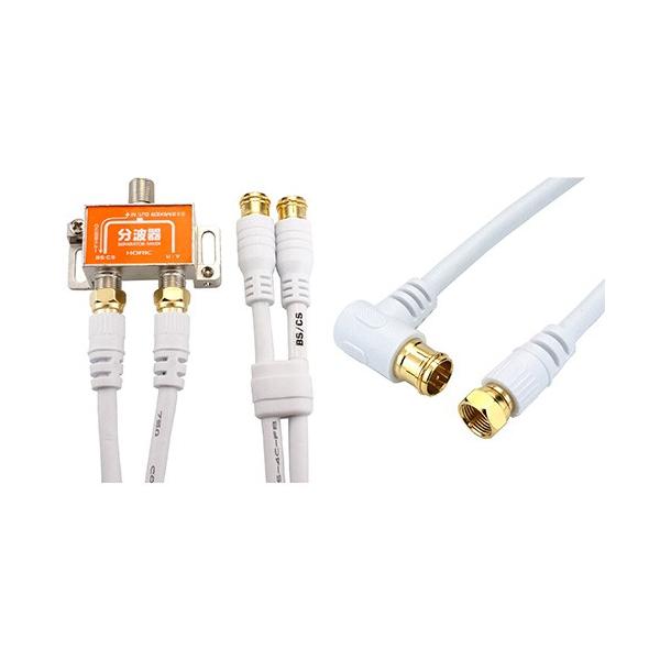 HORIC アンテナ分波器 ケーブル2本付属 50cm + アンテナケーブルF型差込式/ネジ式コネクタ L字/ストレートタイプ1.5m ホワ