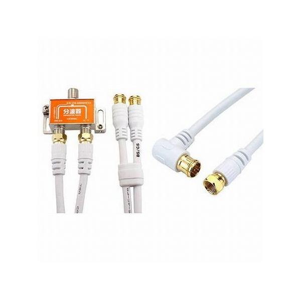 ホーリック アンテナ分波器 50cm ケーブルF型差込式 ネジ式コネクタ L字 ストレートタイプ3m ホワイト セット HAT-SP874+HAT30 代引不可