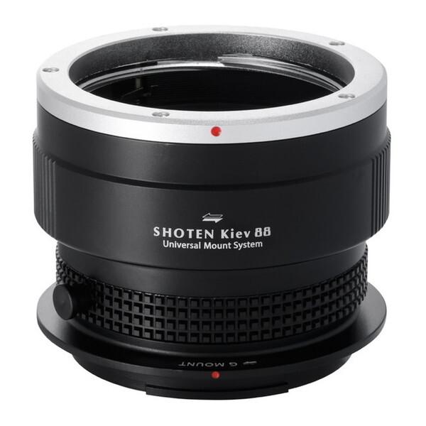 - SHOTEN(ショウテン)UMSシリーズ Kiev88-FG-U は、キエフ88マウントレンズを富士フイルムGFX Gマウントのカメラで使用するためのマウントアダプターです。■特長●マウントパーツを交換することで、各メーカーのミラーレス機に装着可能●マウントパーツを接続する中間マウント(Uマウント)部は、ガタつきなく高い剛性感で接続可能。●アダプター内部は艶消し塗装を施し、内面反射を大幅に抑制●三脚座付き(アルカスイス互換規格)■本体を2分割構造とした新しい発想UMSマウントアダプターは、本体を2分割構造とし、ボディ側マウントパーツを交換できる新しい発想の製品です。■さらなる拡張性。カメラボディを選べる自由ボディ側の専用マウントパーツを交換することで、アダプターを様々なカメラに装着できるようになるため、カメラを新調したり、マウントの異なる複数のカメラを使用したい場合でも、新たにマウントアダプターを用意する必要がなく、お手持ちの機材を有効活用できます。■ハッセルブラッド1000F/1600F用のレンズについてハッセルブラッド1000F/1600F用レンズの装着は、機材を傷めないよう慎重に行ってください。Kiev88とは規格が異なるため、レンズをロックできなかったり、無限遠撮影ができないなどの制限がございます。最終的にはお客様の判断でご利用下さいますようお願いします。■備考●ご使用時にはカメラの「メニュー」-「レンズなしレリーズ」を「ON」にしてください。※カメラの機種により「レンズなしレリーズ」の設定階層が違う場合がございます。各カメラの取扱説明書をご覧になり設定を行ってください。■注意事項●Kiev88CM用レンズなどの非スクリューマウントには対応していません。●装着する機材の個体差・経年変化・損傷による形状の変化等により、装着感(固い、緩い、若干のあそび等)が通常と異なる場合や、装着できない場合があります。●レンズの個体差に対応するため、わずかにオーバーインフになるよう設計する場合があります。実際のピントの位置を確認しながら撮影してください。●必ずしもすべての互換性を保証するものではありません。アダプターは、お客様ご自身の責任でご使用ください。●生産ロットにより、お届けする商品が商品情報と一部異なる場合がございます。キエフ88マウントレンズを富士フイルムGFX Gマウントのカメラで使用するためのマウントアダプター
