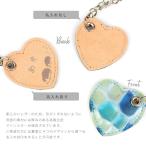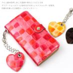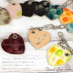 スマホ 本革 ストラップ チェーン ステンドグラスレザー ハート型チャーム エナメル加工 クロコ調型押し 牛革