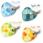 キラキラパール調に輝く、グラデーションに染め分けたステンドグラス調のキレイなエナメルレザーを使用したハート型チャームです。