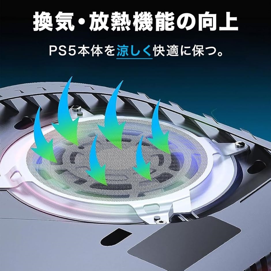 「PlayStation5 & PlayStation5Slim専用設計」 PS5専用に設計されておりファンや通気口にぴったりフィットしてずれることがありません。