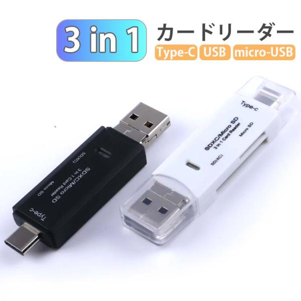 SDカードリーダー microSD/SD 読み込み可能なSDカードリーダー type-C/microUSB/USBに対応!GoPro Android XPERIA Galaxy 送料無料 docomo au sofbank UQ SIMフリー