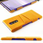 Xperia 1 ケース カードも入る 背面レザー オシャレ ハードケース 2枚収納 シンプル レトロ
