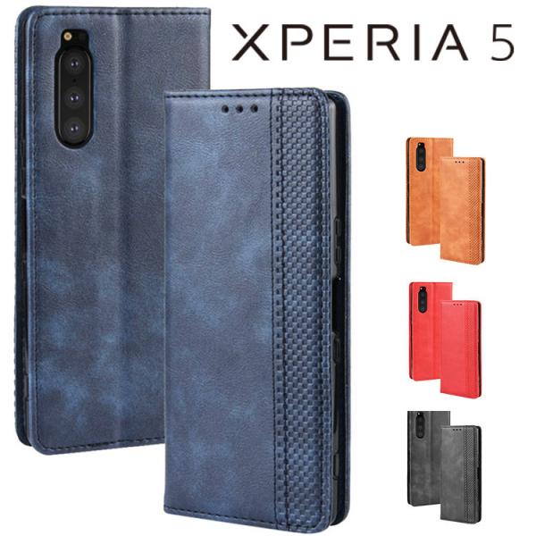 Xperia 5 ケース アンティーク オシャレ レザー カード入れ レザー 合皮 シンプル 北欧風