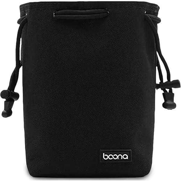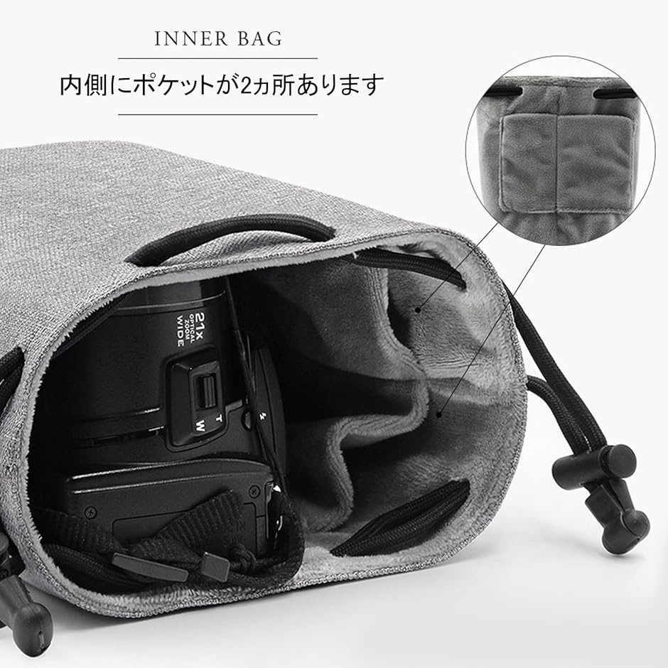 カメラポーチ 防水 小型 巾着 一眼レフ ミラーレス ミニ コンデジ 小さめ (ブラック, L)