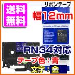TZe-RN34対応 リボンテープ ブラザー用 ピータッチキューブ用 互換TZeテープ 12mm ネイビーブルー ゴールド文字 TZe-RN34対応