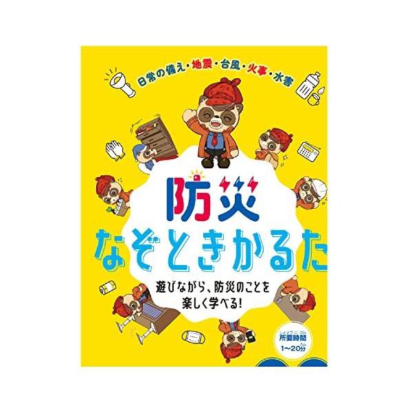 - 防災についてのイロハを「なぞとき」と「かるた」で楽しく遊びながら学べます。「かるた」は上の句、下の句に分かれており、下の句の最初の文字を取ります。ゲームを何度もこなしていくと、上の句を聞くだけで下の句のワードが何か予想できるようになります。ゲームをするだけで自然と防災の知識が身についていきます。「なぞとき」は小学生から解ける問題を全44問収録。なぞなぞ本を楽しむ感覚で一人からでも気軽に遊ぶことができます。