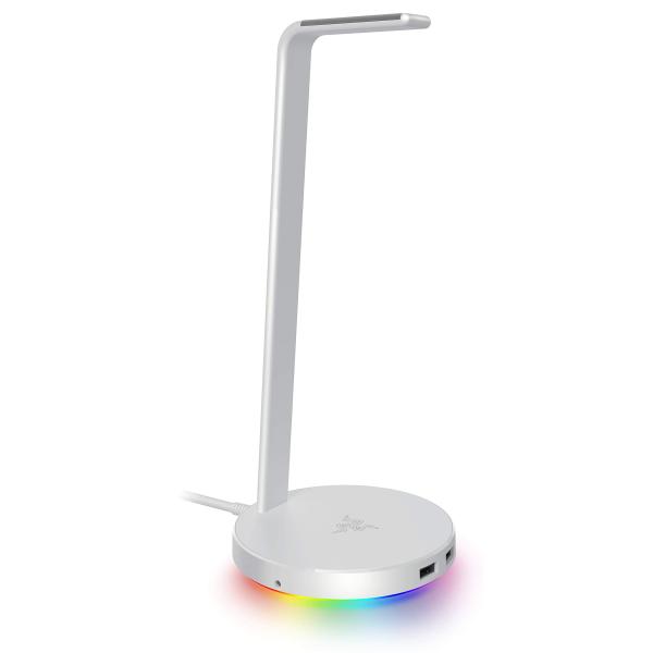 Razer Base Station V2 Chroma Mercury White ヘッドホンスタンド 滑り止めベース付き USBハブ 2ポート RGB対応 【日本正規代理店保証品】 RC21-01510300-R3M1