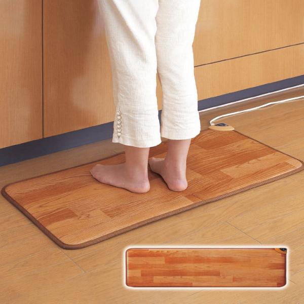 冷えるキッチンの床に簡単敷くだけあったかポカポカ!ホットマット。水や衝撃に強いので台所での作業にはピッタリ!電気代は1時間あたり、たったの約1.2円!防水加工でサッとひと拭きお掃除簡単。馴染みやすいフローリング柄!ホットカーペットとしてもご使用いただけます!