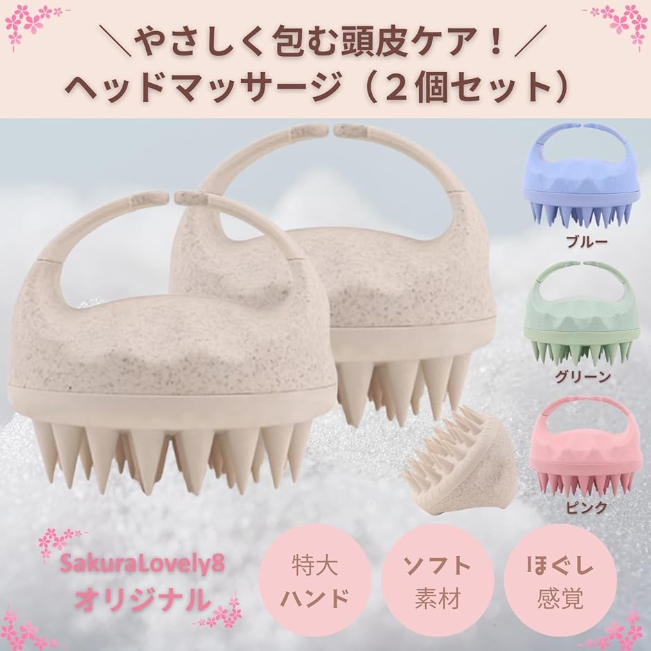 - バリエーションコード : 2bu3ll1pxv商品コード2bu3n5htoy商品名頭皮マッサージブラシ 2個セット 泡立ち特大ハンドル 柔らか歯ブランドSakuraLovely8カラーオフホワイト「泡立ちヘッドケア」 シリコーン素材の柔らかい櫛歯が細かく泡立て、頭皮の汚れと皮脂をしっかり吸着。指先では届きにくい毛穴奥までクリーン洗浄します。「握りやすい特大ハンドル」 手にぴったりフィットする大きめハンドルで、濡れた状態でも滑らずしっかり握れて使いやすさ抜群、長時間でも疲れにくい設計です。「やさしくフィットする櫛歯」 柔らかゴムの櫛歯が頭皮にやさしくなじみ、マッサージしながらリラックス。敏感肌でも安心して使用できる設計です。「製品仕様」 サイズ:縦8x横9cm(1個)、重量:71g/個、カラー:オフホワイト/ピンク/ブルー/グリーン、シリコーン製、泡立ちやすい構造、2個セット。※ 他ネットショップでも併売しているため、ご注文後に在庫切れとなる場合があります。予めご了承ください。※ 品薄または希少等の理由により、参考価格よりも高い価格で販売されている場合があります。ご注文の際には必ず販売価格をご確認ください。※ 沖縄県、離島または一部地域の場合、別途送料の負担をお願いする場合があります。予めご了承ください。※ お使いのモニタにより写真の色が実際の商品の色と異なる場合や、イメージに差異が生じることがあります。予めご了承ください。※ 商品の詳細(カラー・数量・サイズ 等)については、ページ内の商品説明をご確認のうえ、ご注文ください。※ モバイル版・スマホ版ページでは、お使いの端末によっては一部の情報が表示されないことがあります。すべての記載情報をご確認するには、PC版ページをご覧ください。