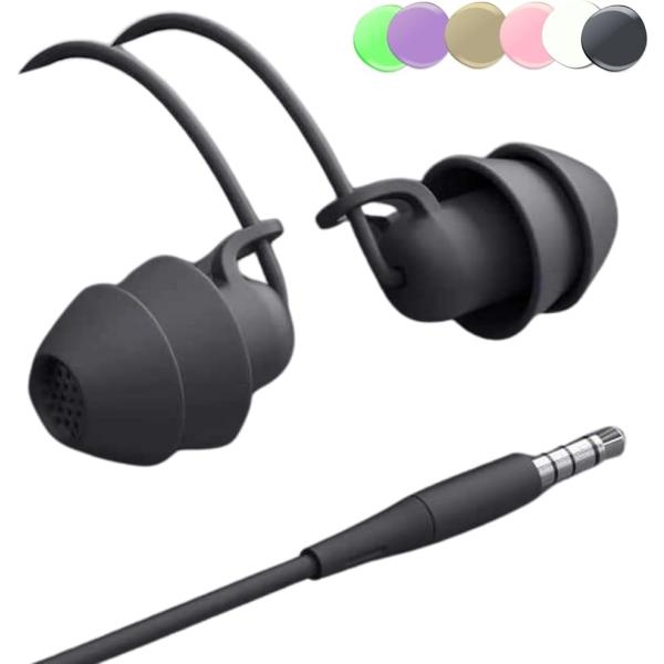 ?ルナシェ? 寝ホン 睡眠用 イヤホン 有線 耳が痛くない 寝返りしてもいたくない 寝落ち用 ソフトカラー 寝ながら聞く(ブラック)
