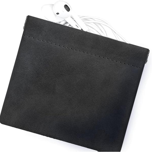 イヤホンケース ポーチ 小さめ 有線 イヤホンポーチ レザー素材 耐衝撃 防水 保護ケース 滑り止め MDM(ブラック, Large)