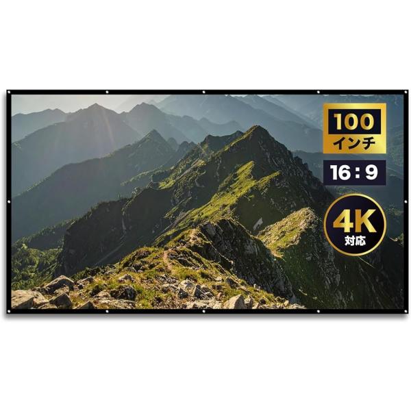 100インチ・16:9 プロジェクタースクリーン 折りたたみ式 壁掛け・吊り下げ対応 家庭用・屋外対応(ホワイト, 100インチ)