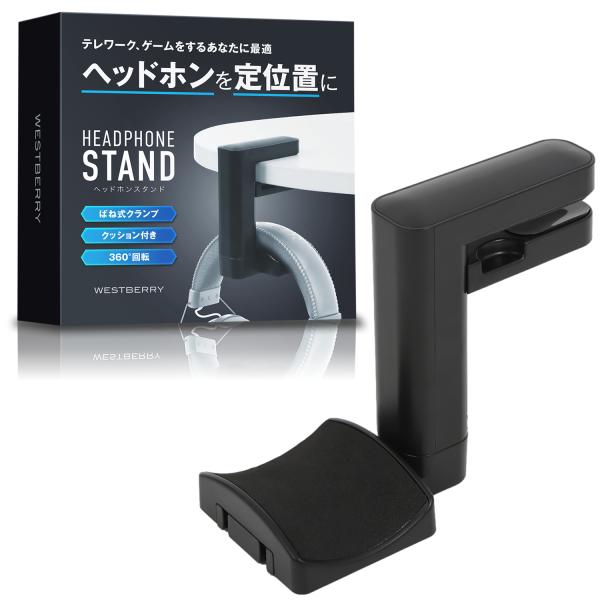 WESTBERRY ヘッドホンスタンド フック ハンガー 簡単取付 360°回転 バネ式クランプ