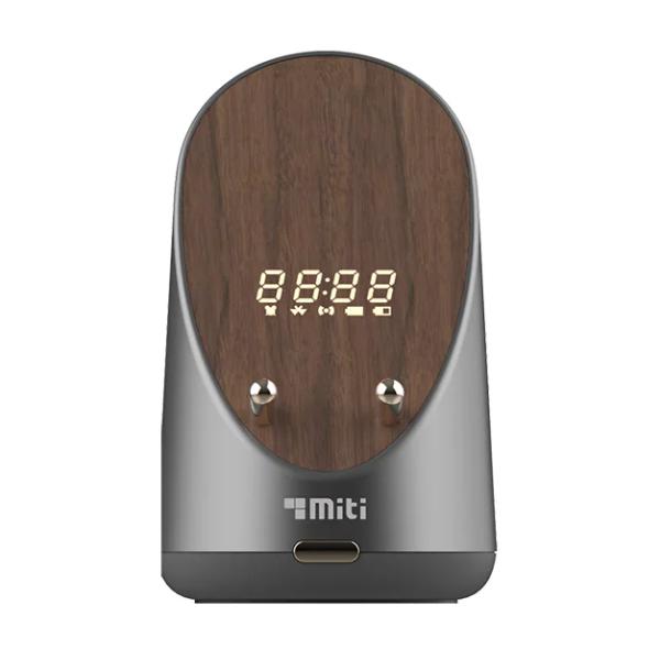 スマホスタンド ワイヤレス充電 多機能充電器 卓上時計デジタル時計 目覚まし時計 スマートフォン インダクタンススピーカー付き非接触充電器 (木目スタイル)