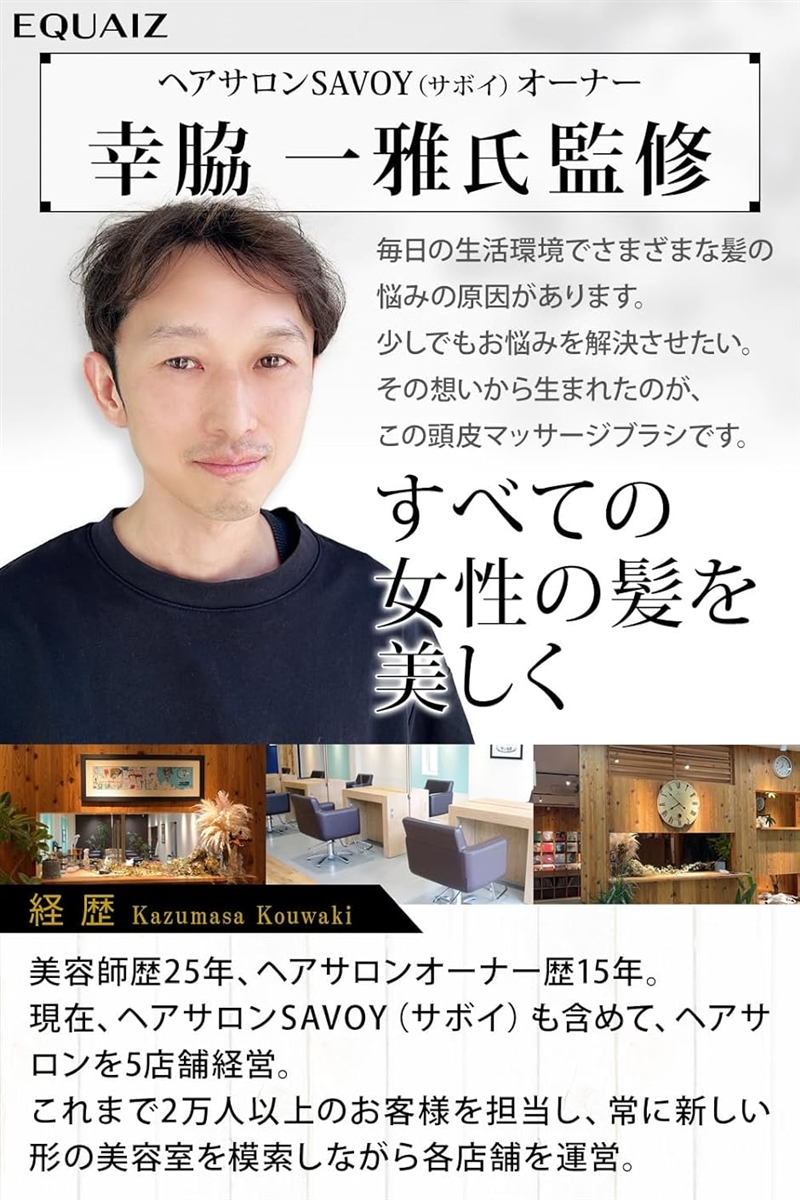 「ヘアサロンオーナー監修」美容師歴25年、ヘアサロンオーナー歴15年の美容師であり、これまで2万人以上のお客様を担当してきた、ヘアサロンを5店舗経営するヘアサロンオーナー監修。