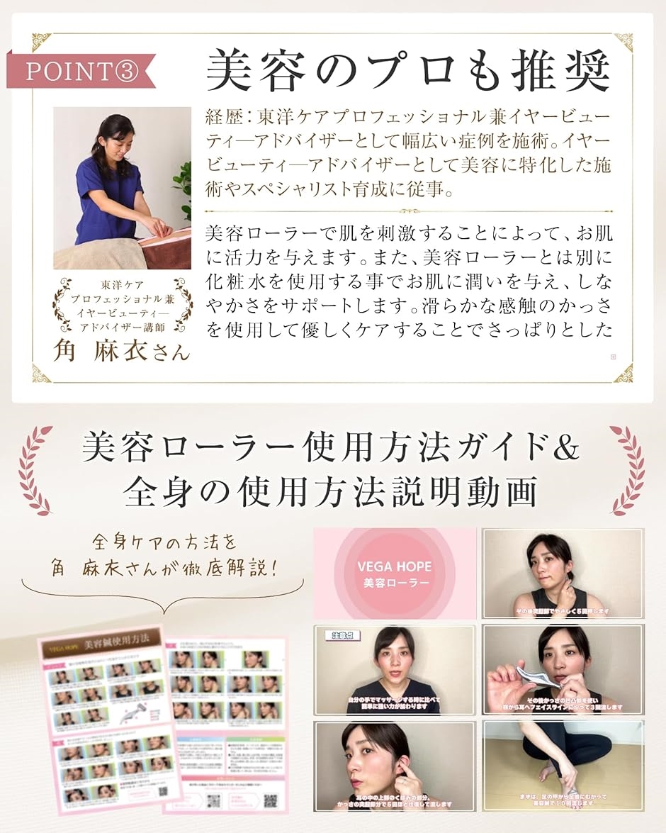 「美容鍼のプロが推奨」 自宅で簡単に美容マッサージができる一台三役(ローラー、かっさ、ツボ押し)の美容ローラーです。