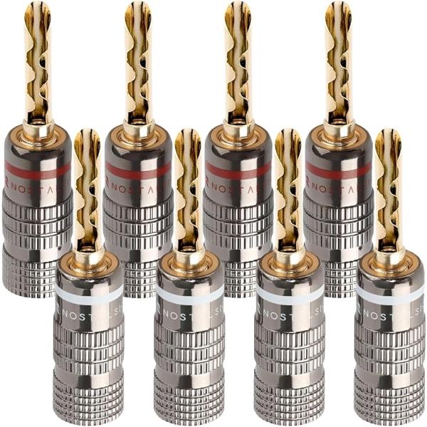 バナナプラグ 円筒波型スリット BFA波型 赤+白セット ソルダーレス 金メッキ 簡単取り付け ダブルネジ固定 (8個(4ペア))