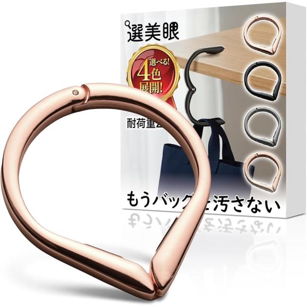 - バリエーションコード : 2buk2pifn2商品コード2buk2sx9v8商品名バッグハンガー かばんかけ バッグフック 鞄 机 カバンフック バックハンガー テーブル 耐荷重20kg 高強度タイプブランド選美眼カラーローズゴールドサイズ等小「素材」: 環境に優しい耐腐食性亜鉛合金製で、エレガントさと耐久性を兼ね備えています。酸化による変色の心配もありません。ハンドバッグの金具やデリケートな肌を傷つけにくい設計。外出先でのバッグの置き場所に困る心配がなくなり、一度使うと手放せなくなるでしょう。キーホルダーやブレスレットとしてもお使いいただけ、プレゼントにも最適です。「スタイリッシュな水滴型デザイン」: 軽量で持ち運びやすく、特別なセットアップは不要です。バッグに入れておけば、必要な時にサッと取り出して使えます。トートバッグやハンドバッグを掛ける場所がない時に、追加のスペースを提供。スタイリッシュで便利なアイテムです。ゴルフ場など、どんなシーンでもあなたのおしゃれを邪魔しません。「様々なシーンで活躍」: フックの先端には滑り止めラバーパッドが付いており、バッグの滑り落ちを防ぐだけでなく、大切な家具の表面を傷から守ります。テーブルの端、カウンター、手すり、車のヘッドレストなど、様々な場所で活躍。ご注意: 厚さ約80mmまでの、フチが盛り上がっていないフラットな面にしっかりフィットします。「驚きの軽量&高耐荷重」: たった56gと超軽量ながら、最大20kgまでの重さに耐えられます。水筒やiPad、本がたっぷり入った通勤バッグから、ノートパソコンや書類が入ったビジネスリュック、学校バッグ、トートバッグ、財布、その他あらゆる種類のバッグまで、しっかりホールド。大切なバッグを床のバクテリアや汚れから守ります。「セット内容」 おしゃれなバッグハンガーフック1点をお届けします。※ 他ネットショップでも併売しているため、ご注文後に在庫切れとなる場合があります。予めご了承ください。※ 品薄または希少等の理由により、参考価格よりも高い価格で販売されている場合があります。ご注文の際には必ず販売価格をご確認ください。※ 沖縄県、離島または一部地域の場合、別途送料の負担をお願いする場合があります。予めご了承ください。※ お使いのモニタにより写真の色が実際の商品の色と異なる場合や、イメージに差異が生じることがあります。予めご了承ください。※ 商品の詳細(カラー・数量・サイズ 等)については、ページ内の商品説明をご確認のうえ、ご注文ください。※ モバイル版・スマホ版ページでは、お使いの端末によっては一部の情報が表示されないことがあります。すべての記載情報をご確認するには、PC版ページをご覧ください。リング型バッグハンガーとなります。4色のカラーバリエーションあり。バッグハンガーを使えば、トイレ、レストラン、バー、イベント会場など、どこでも大切なバッグを清潔に保てます。床に直置きすることによる細菌、水、汚れとの接触を防ぎ、衛生面も安心です。わずかな隙間があれば設置可能なスリム設計。片手で簡単に操作でき、クッション性のある開口部を広げて、バッグのストラップやバックパックのループにクリップで留めるだけです。使う時は、バッグハンガーを持ち上げてテーブルやカウンターに掛けるだけ。使い終わったら、ストラップを引くだけでバッグハンガーが自動でバッグに戻ります。このバッグフックは、旅行のお供にも最適。飛行機、車、クルーズ船での使用はもちろん、会議やセミナーでも便利に活躍します。どこでも使える実用的なギフトとしても喜ばれます。