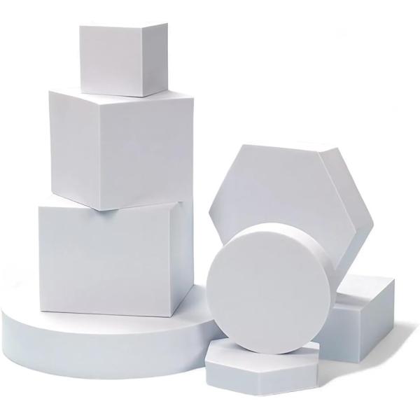 撮影小道具 台 物撮り セット 立方体 円柱形 ディスプレイ 軽量 幾何学デザイン 8点セット(ホワイト)