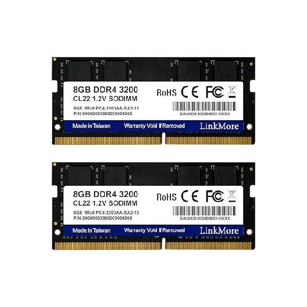 【並行輸入品】 LinkMore DDR4 8GBx2枚組 (16GB) 3200Mhz ノートPC用メモリ (CL22/1.2V/260Pin)