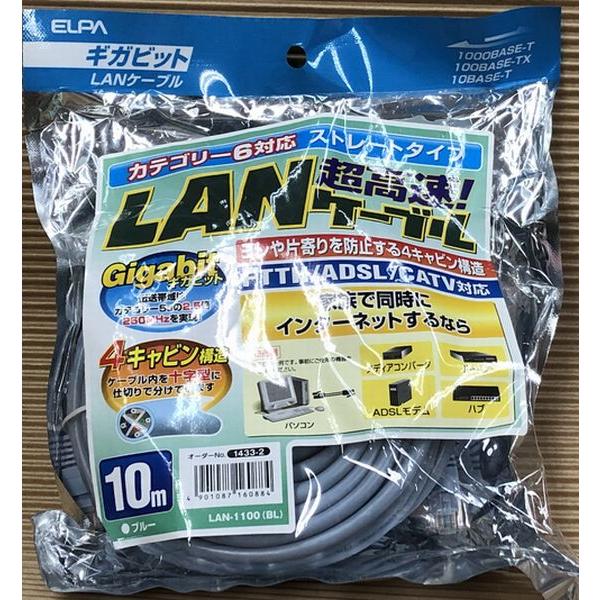 ELPA 10m LANケーブル超高速ストレートLAN-1100(BL)
