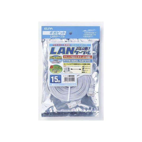 朝日電器 フラットLANケーブル CAT6 ホワイト 15m LAN-FT1150(W)