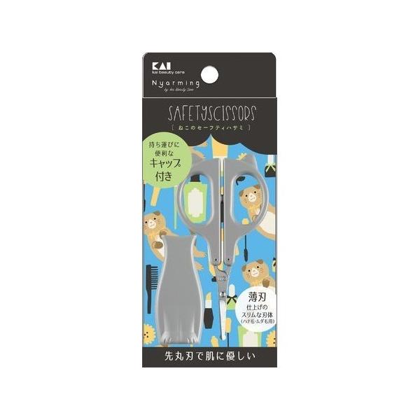 Nyarming ねこのセーフティハサミ HC-2202 貝印 ( 猫グッズ 猫好き 鼻毛ハサミ セーフティハサミ プレゼント ギフト ) メール便