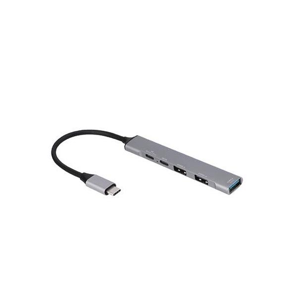 ナカバヤシ UH-C3384-GY グレー PD対応USB3.2 gen1+2.0 4ポートアルミハブ