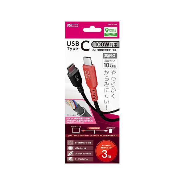 MCO USB PD100W 充電ケーブル 3m やわらかく からみにくい ブラック 取り寄せ商品