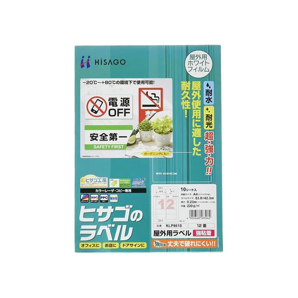 【お取り寄せ】ヒサゴ 屋外用ラベル 強粘着 A4 12面 角丸 10枚 KLP861S レーザー用ラベルシール 粘着ラベル用紙