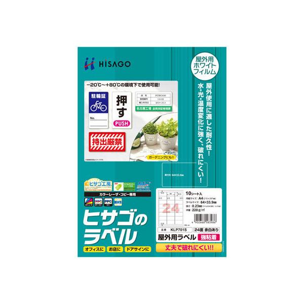 【お取り寄せ】ヒサゴ 屋外用ラベル 強粘着 A4 24面 余白あり 角丸 10シート レーザー用ラベルシール 粘着ラベル用紙
