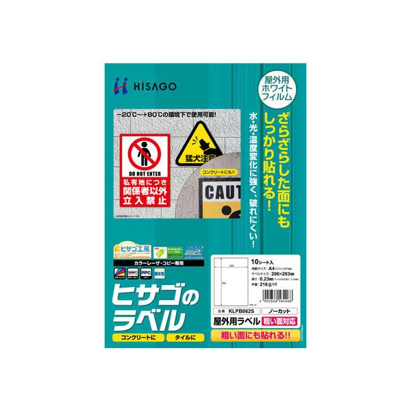 ヒサゴ 屋外用ラベル 粗い面対応 A4 ノーカット 角丸 10シート ノーカット レーザー用ラベルシール 粘着ラベル用紙