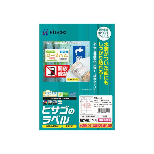 【お取り寄せ】ヒサゴ 屋外用ラベル 結露面対応 A4 12面 角丸 10シート マルチプリンタ対応ラベルシール 粘着ラベル用紙