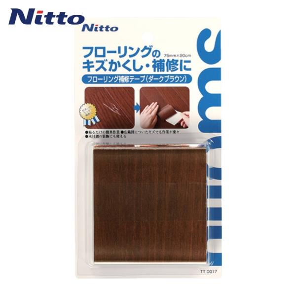 - <ニトムズ フローリング補修テープ ダークブラウン 幅75mm×長さ90cm 補修 TT0017> ●フローリングの大きなキズも簡単補修 ・フローリングの傷を補修するテープです。 ・フローリングについてしまった気になるキズもピタッと貼るだけでカンタンに隠せて、キズ防止効果もあります。 ・テープ幅が広いので広範囲のキズも補修できます。 ・フローリングの色にあわせた5色をご用意しています。 【特長】 ●粘着テープタイプなので貼るだけの簡単作業 ●広範囲についた傷でも作業が楽々 【用途】 ●フローリングのキズかくし、補修に。 ●木目調の机・棚などの補修・装飾に。 【商品仕様】 カラー:ダークブラウン サイズ(幅×長さ):75mm × 90cm 材質:基材/ウレタン、紙、ポリエステル 粘着剤/アクリル系 はくり紙/紙 商品写真は、 お使いのモニター設定、お部屋の照明等により実際の商品と色味が異なる場合がございます。