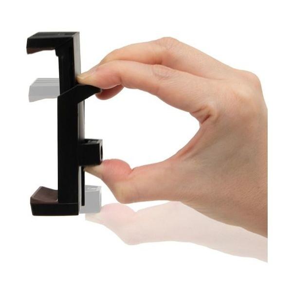 - (特長) ●しっかりつかんで挟みやすいスマートフォンホルダーです。 ●調節幅取っ手をつまんで挟むことのできるスマートフォンホルダーです。 ●取っ手が付くことで、従来の製品に比べてスマートフォンの取り付けが容易になりました。 ●1/4インチネジ穴が背面と底面の2か所にあり、三脚と組み合わせて使用できます。 (規格) ●色:ブラック ●幅(mm):38 ●奥行(mm):32 ●高さ(mm):73 ●材質:プラスチック、ゴム 【カラー】 ブラック 【重量】 50.0G 【入数】 1個 KKPHEC