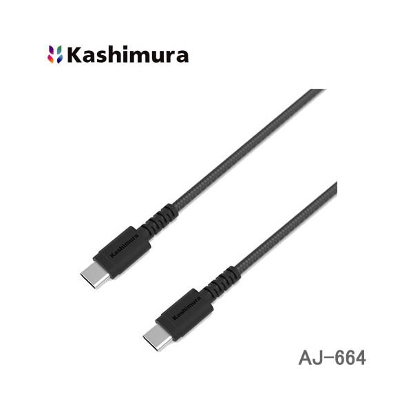 カシムラ USB充電&同期ケーブル 2m Type-C⇔Type-C ブラック AJ-664 折曲や断線に強いナイロンメッシュケーブル採用