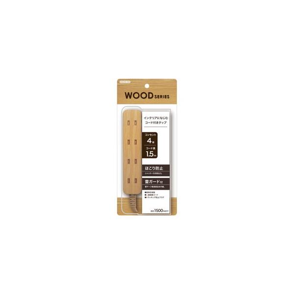 トップランド コードタップ(4個口 1.5m)ナチュラルウッド TOPLAND M4249-NW 返品種別A