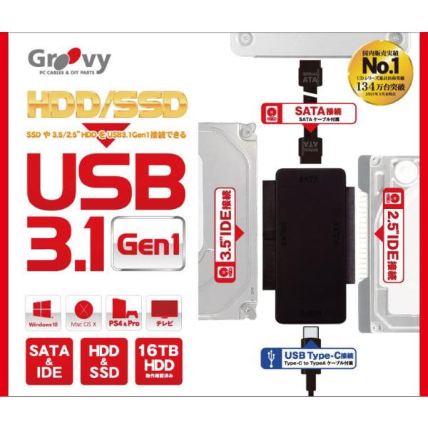 Groovy HDD簡単接続セット USB3.1 gen1接続 BD/ DVD対応 SATA&IDEドライブ用 UD-3102SAIDE 返品種別A