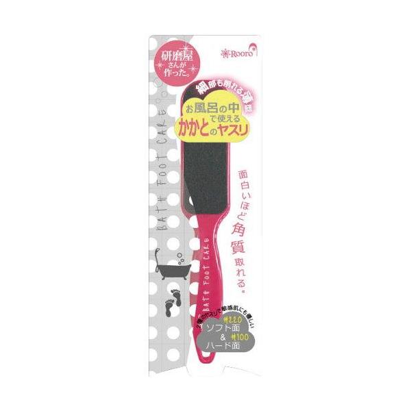 - お店TOP>日用品>フットケア>足のスキンケア>足の角質ケア>Rooro(ローロ) ローロ バスフットファイル(かかと用ヤスリ・やすり) RO-OF (1コ入)【Rooro(ローロ) ローロ バスフットファイル(かかと用ヤスリ・やすり) RO-OFの商品詳細】●かかとや足の裏の角質やタコ等のケアに。お風呂の中で使えるかかとのヤスリです。●削りやすさを追求したハンドル角度が、ヤスリの効果をアップします。固くなった足の角質をやさしくこすり落としてなめらかに整えます。●2種のヤスリで敏感肌にもやさしく、超薄型なので細部も削れます。●ハード面は、反り返ったカーブでピンポイントに削れ、また力を入れやすいので固くなったお肌に効果的です。●ソフト面は、内側にカーブした細かいヤスリが広範囲に当たり、やわらかいお肌や、お手入れの仕上げにお使いいただけます。【使用方法】1.入浴時などにお湯で皮膚を柔らかくします。2.かかとや足の裏、側面の固く古くなった角質や、厚く黄色く変色したタコ等をこすってください。固さにより力の入れ具合を加減し、ヤスリの目を粗め・細めと使い分けてください。3.お手入れ後は、お肌にクリーム等をつけて保湿を行ってください。【規格概要】ヤスリ面番手(粗さ):ソフト面220番手/ハード面100番手ヤスリ部厚み:約6mm【注意事項】・皮膚に異常のある時やお肌の弱い方は、ご使用にならないでください。・皮膚を傷めますので、こすり過ぎや柔らかい部分へのご使用は十分にご注意ください。・赤みや痛みなど肌に異常が現れた場合はご使用をお止めください。・浴槽に沈めないでください。ご使用後はよくすすいで水をきり、清潔な状態で通気性の良い所に保管してください。また、足元や落下の恐れのある場所は避けて保管してください。・ヤスリ部分のザラザラ感が無くなったらお取替え時です。新しい本品をお買い求めください。【原産国】韓国【ブランド】ローロ(Rooro)【発売元、製造元、輸入元又は販売元】柳瀬リニューアルに伴い、パッケージ・内容等予告なく変更する場合がございます。予めご了承ください。柳瀬669-3131 兵庫県丹波市山南町谷川13850795-77-2151広告文責:楽天グループ株式会社電話:050-5577-5043[フットケア/ブランド:ローロ(Rooro)/]
