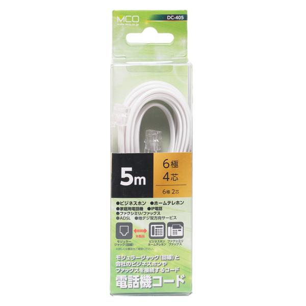 DC-405 WH 在庫限り MCO ミヨシ 6極4芯/2芯 電話機コード ホワイト 5m 管47387