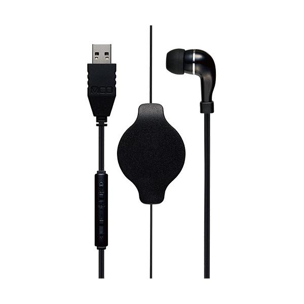 - ミヨシ UHP-K01/BK 手元コントローラー付き 巻取り式 片耳イヤホン USBタイプ ブラック UHPK01/BK 131